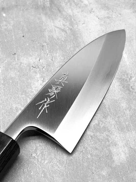 Introducing “Marushin Makoto-saku” 真琴作 by Tadokoro San, a seasoned knife sharpener hailing from Tosa, Japan. Commencing his journey at 15 under the guidance of the renowned Sakai sharpener Morihiro-san, Tadokoro now boasts 25 years of expertise, infusing traditional techniques into his craft.